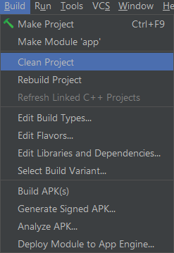 Build > Clean Project