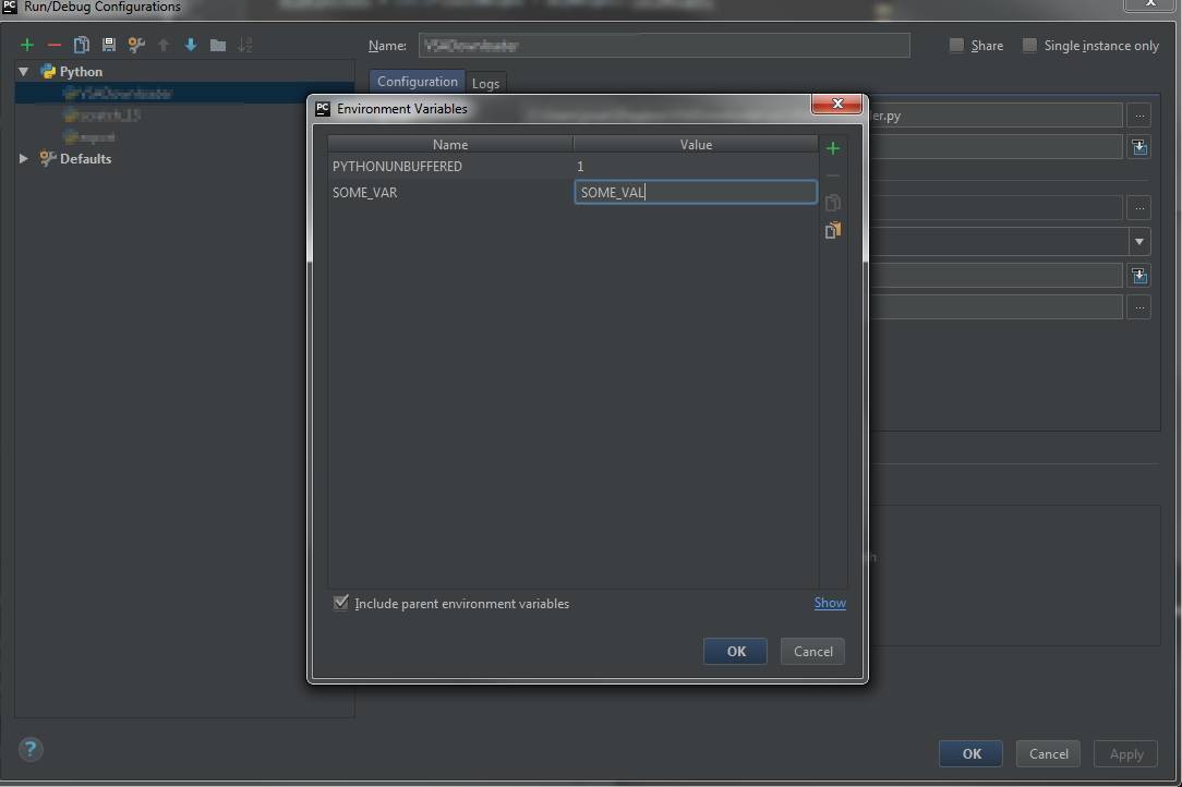 avant que vous ne commenciez les votes négatifs, j'ai lu ce , mais cela ne résout pas ce que je veux. En outre, j'ai essayé de définir les variables d'environnement dans Préférences -> Construire, l'Exécution, le Déploiement -> Console -> Console Python / Django Console , mais il définit les variables de l'interpréteur.