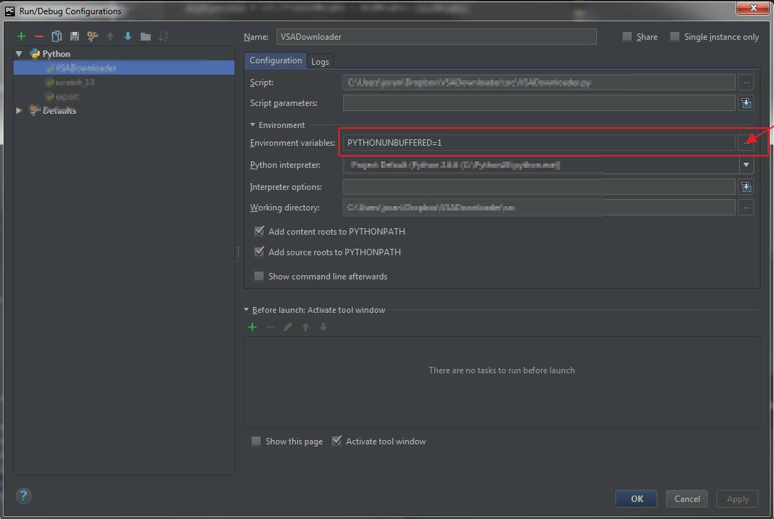 Comment définir les variables d'environnement dans PyCharm?