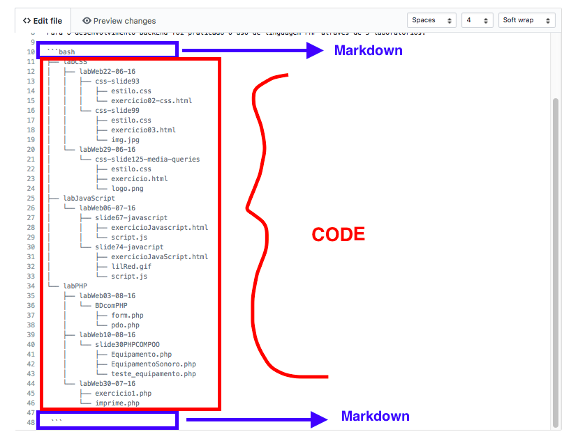 la meilleure façon de faire ceci est d'entourer votre arbre dans le triple backticks pour dénoter un bloc de code. Pour plus d'informations, voir les docs markdown: http://daringfireball.net/projects/markdown/syntax#code